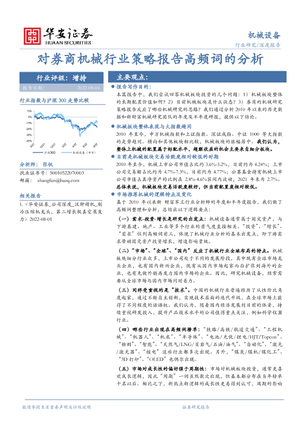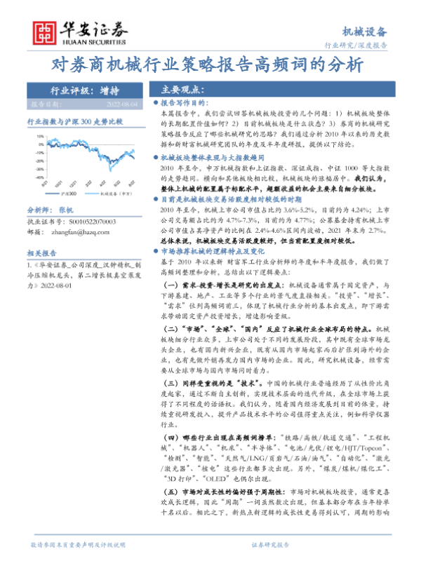 【华安证券】【20220804】20220804-华安证券-机械设备行业深度报告:对券商机械行业策略报告高频词的分析-18页