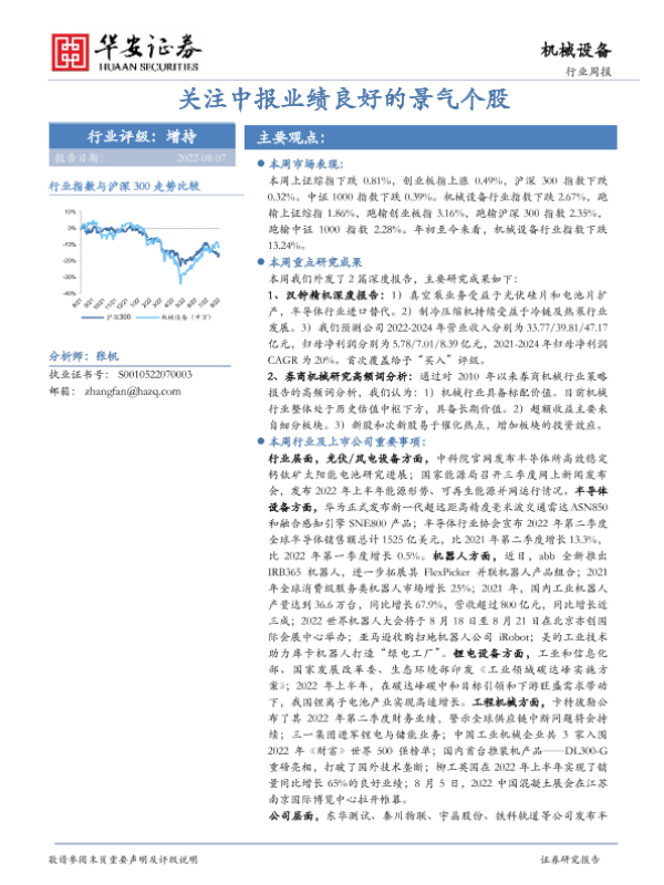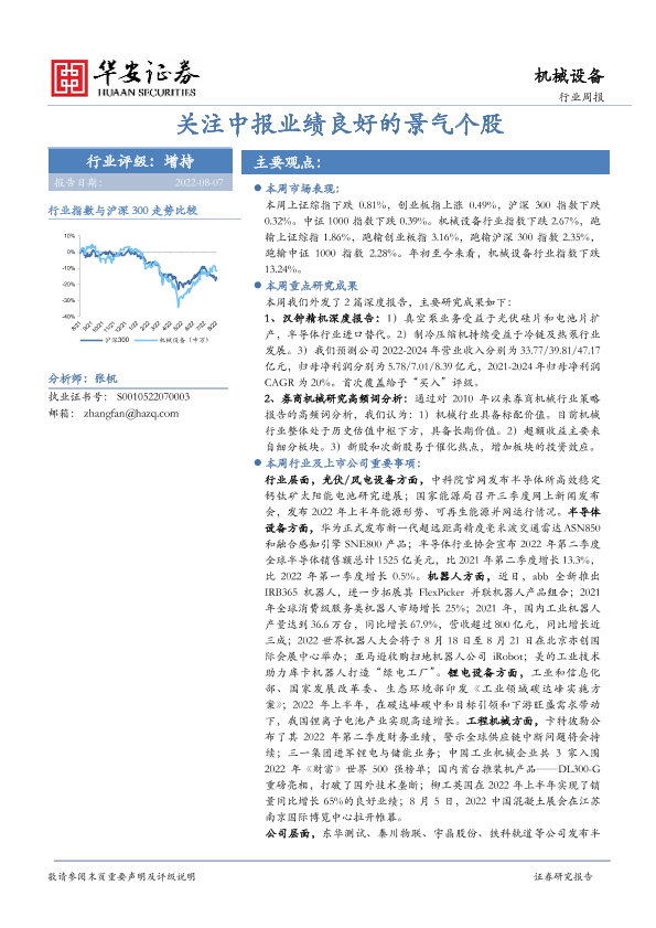 【华安证券】【20220807】20220807-华安证券-机械设备行业周报:关注中报业绩良好的景气个股-14页