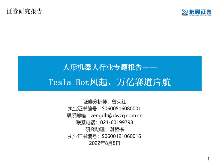 【东吴证券】【20220808】人形机器人行业专题报告:Tesla Bot风起,万亿赛道启航-62页