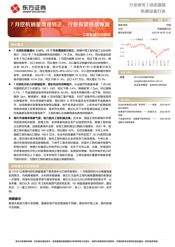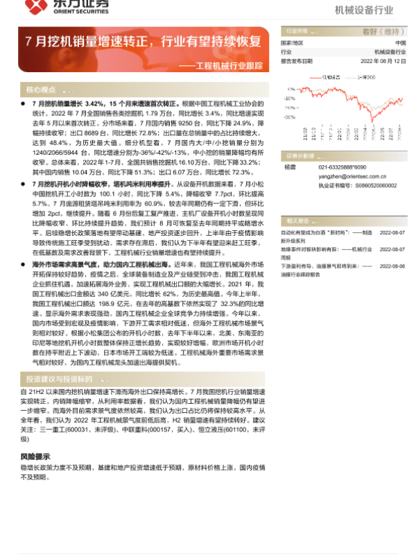 【东方证券】【20220812】20220812-东方证券-工程机械行业跟踪:7月挖机销量增速转正,行业有望持续恢复-6页