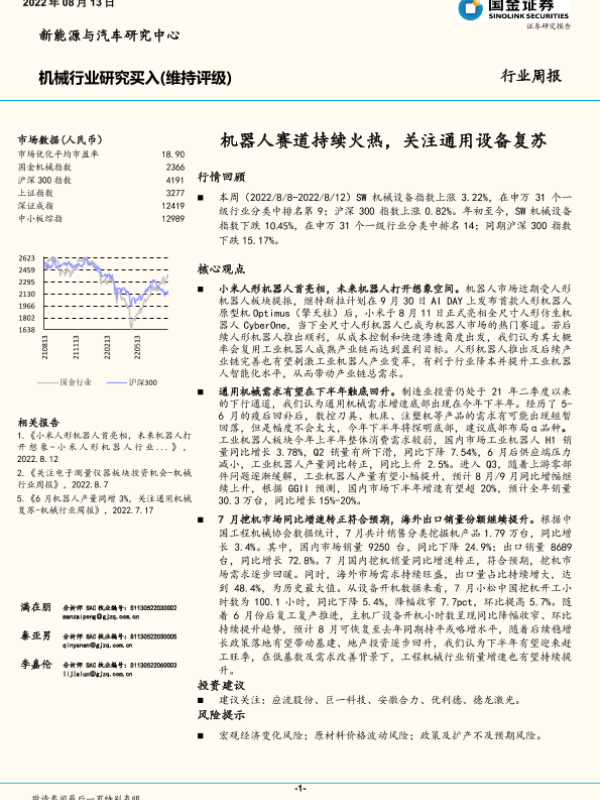 【国金证券】【20220813】机械行业研究:机器人赛道持续火热,关注通用设备复苏-18页