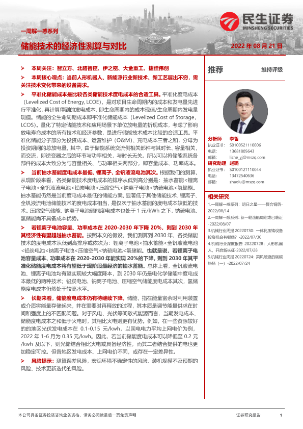 【民生证券】【20220821】机械:一周解一惑系列-储能技术的经济性测算与对比-14页