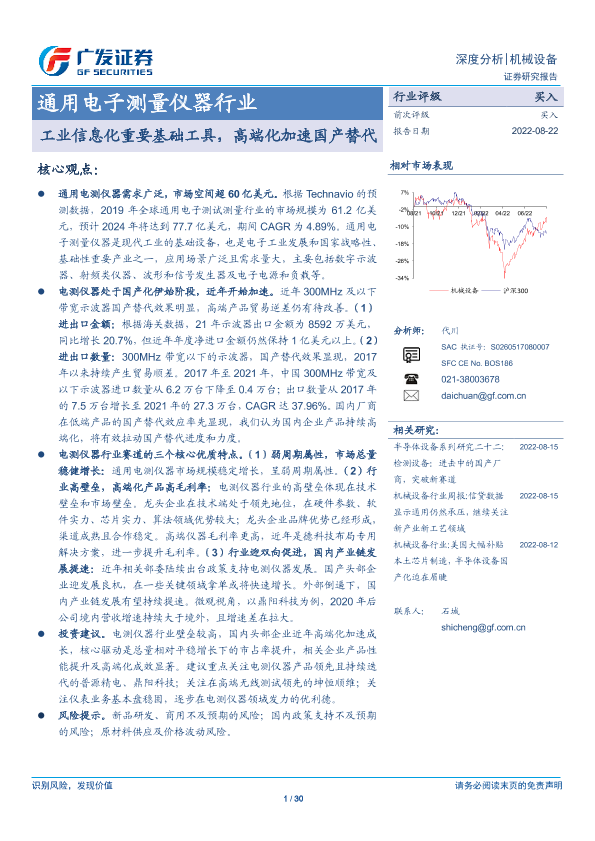 【广发证券】【20220822】通用电子测量仪器行业:工业信息化重要基础工具,高端化加速国产替代-30页
