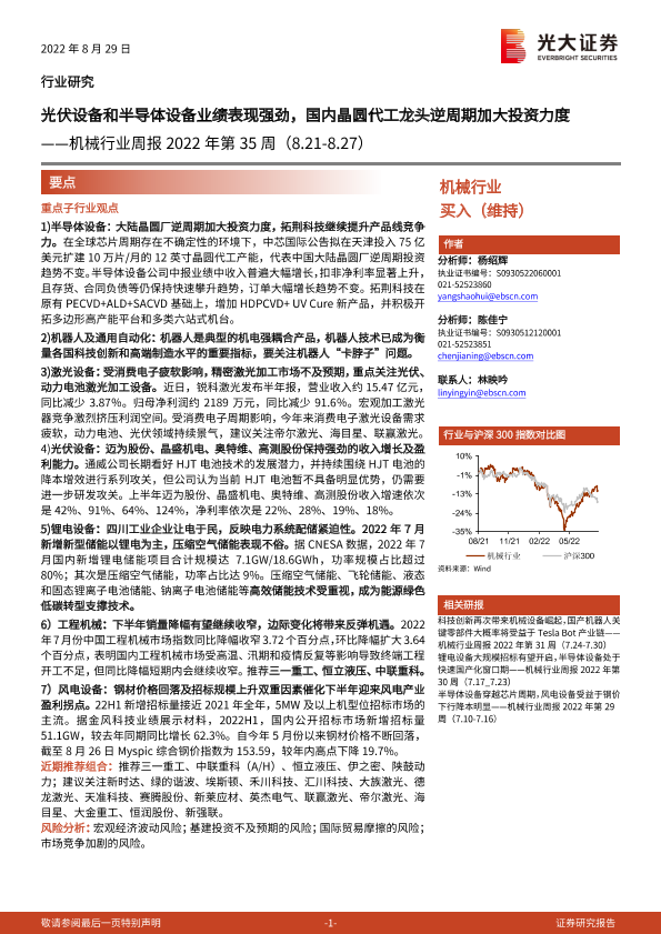 【光大证券】【20220829】机械行业周报2022年第35周:光伏设备和半导体设备业绩表现强劲,国内晶圆代工龙头逆周期加大投资力度-31页