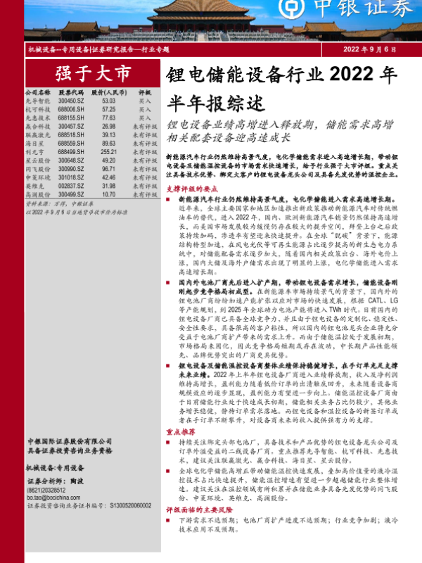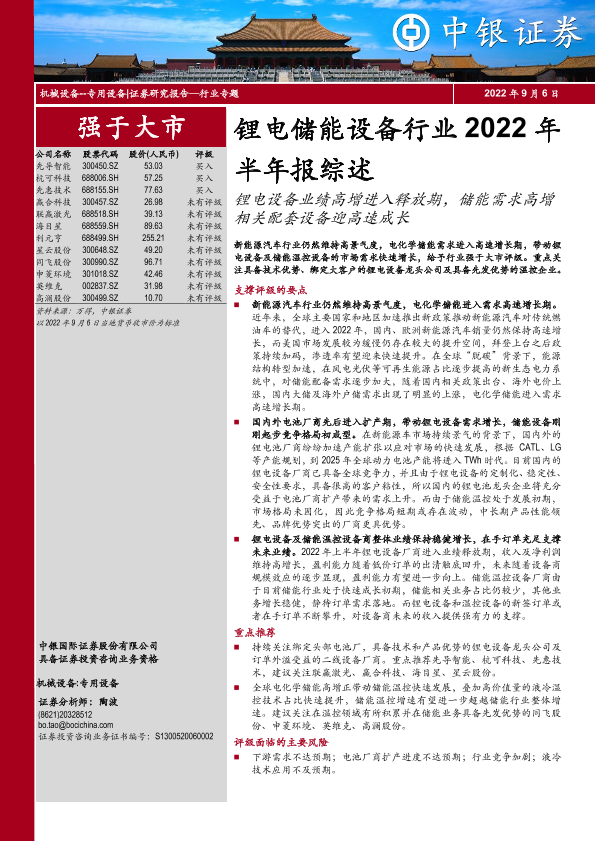 【中银证券】【20220906】锂电储能设备行业2022年半年报综述:锂电设备业绩高增进入释放期,储能需求高增相关配套设备迎高速成长-24页