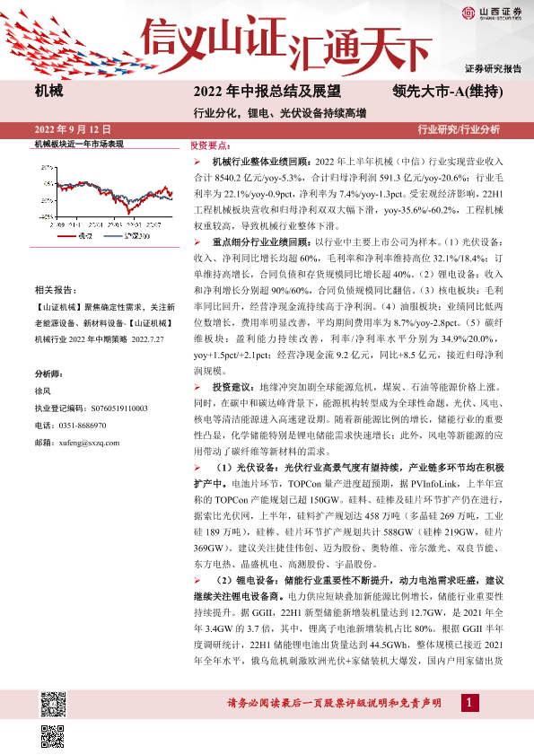 【山西证券】【20220912】机械2022年中报总结及展望:行业分化,锂电、光伏设备持续高增-34页