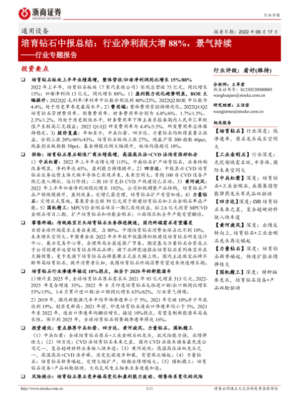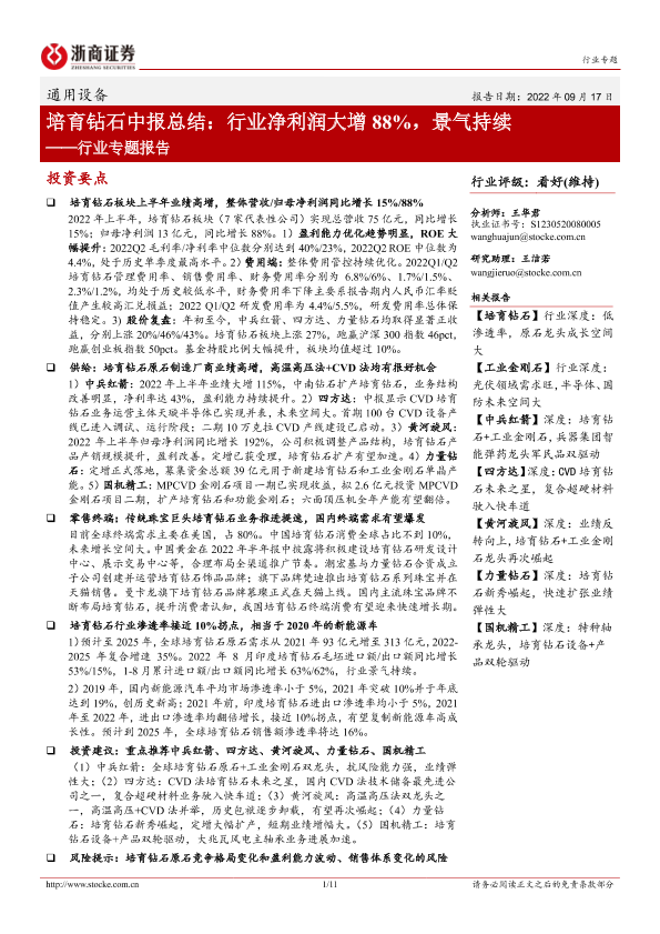 【浙商证券】【20220917】通用设备行业专题报告:培育钻石中报总结:行业净利润大增88%,景气持续-11页