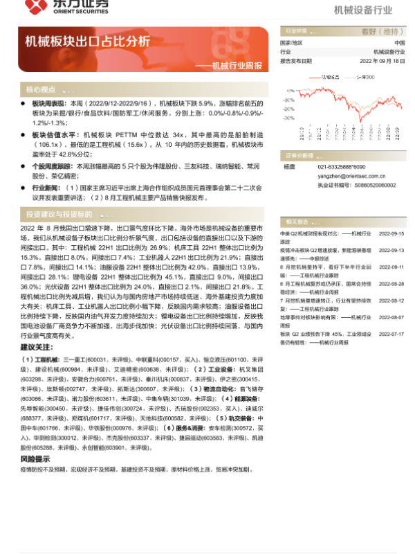 【东方证券】【20220918】20220918-东方证券-机械行业周报:机械板块出口占比分析-25页