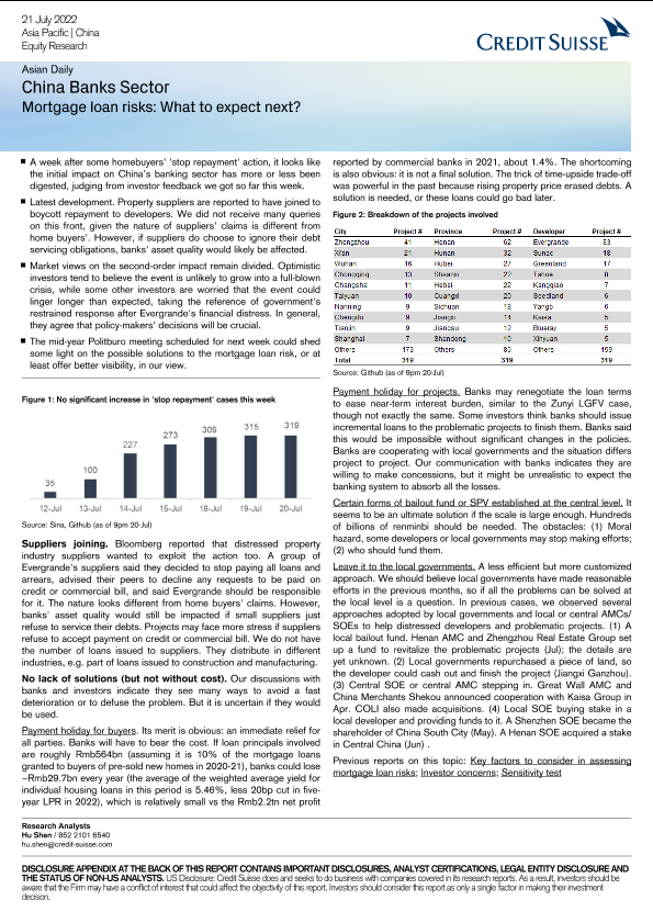 【Credit Suisse】【20220721】中国银行业部门——抵押贷款风险:接下来会发生什么?-5页