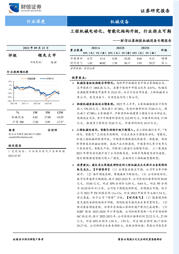 【财信证券】【20220921】20220921-财信证券-湘股机械设备专题报告:工程机械电动化、智能化结构升级,行业拐点可期-25页