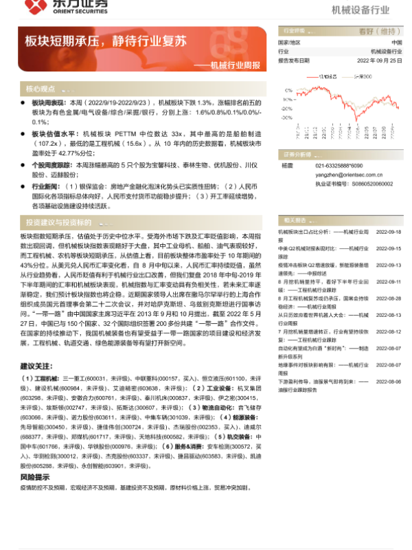 【东方证券】【20220925】20220925-东方证券-机械行业周报:板块短期承压,静待行业复苏-25页