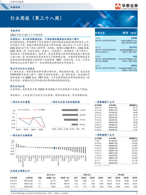 【华泰证券】【20220925】20220925-华泰证券-机械设备行业周报(第三十八周)-17页