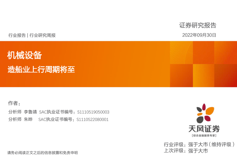 【天风证券】【20220930】机械设备行业研究周报:造船业上行周期将至-15页