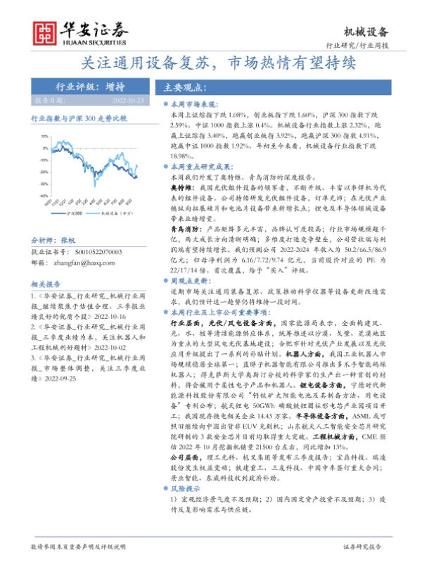 【华安证券】【20221023】20221022-华安证券-机械设备行业周报:关注通用设备复苏,市场热情有望持续-13页