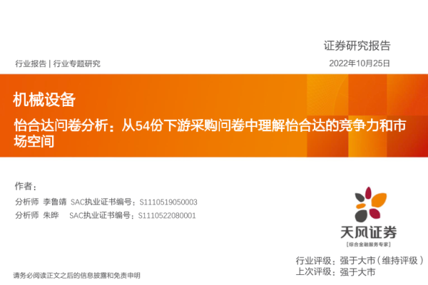 【天风证券】【20221025】怡合达问卷分析:从54份下游采购问卷中理解怡合达的竞争力和市场空间-14页