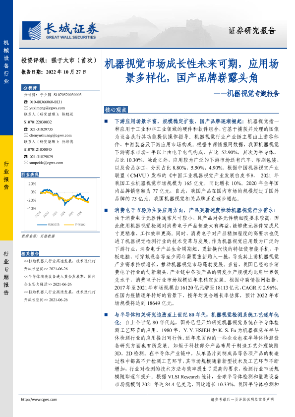 【长城证券】【20221027】机器视觉专题报告:机器视觉市场成长性未来可期,应用场景多样化,国产品牌崭露头角-28页