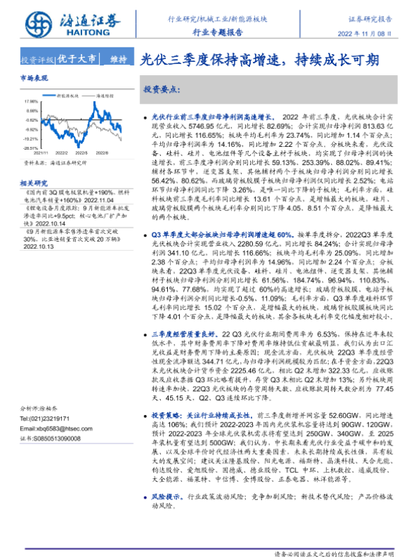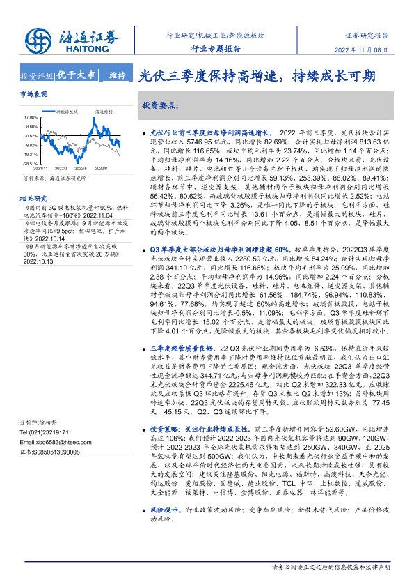 【海通证券】【20221108】20221108-海通证券-机械行业专题报告:光伏三季度保持高增速,持续成长可期-19页