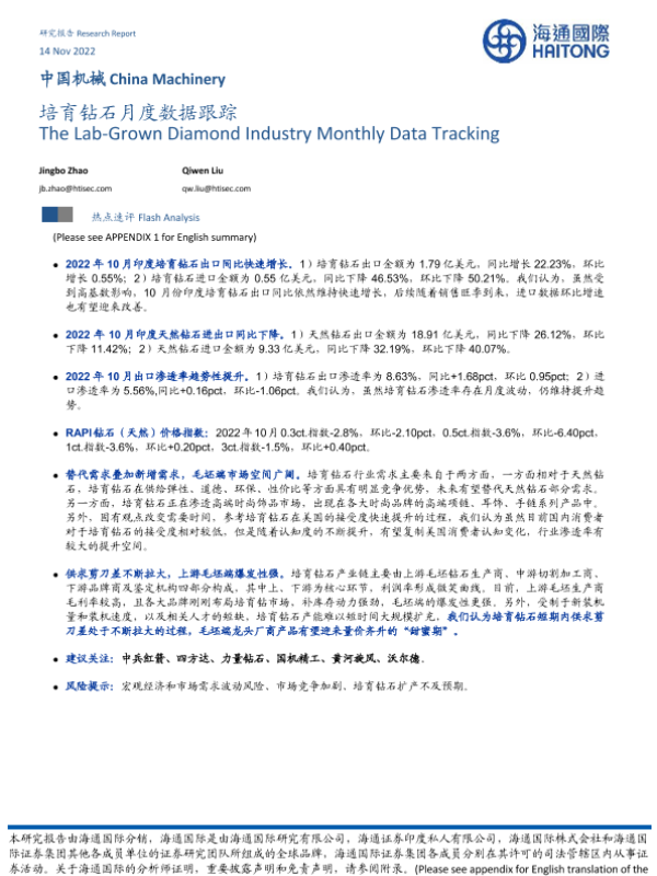 【海通国际】【20221114】中国机械:培育钻石月度数据跟踪-11页