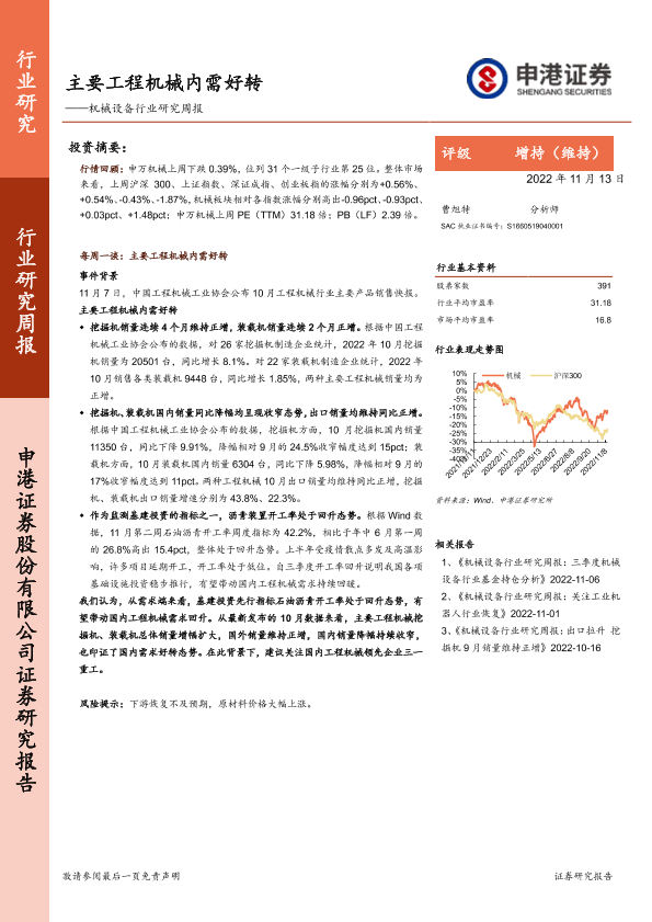 【申港证券】【20221113】20221113-申港证券-机械设备行业研究周报:主要工程机械内需好转-10页