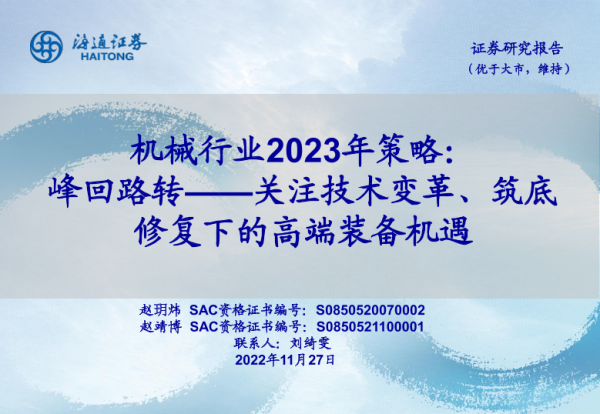 【海通证券】【20221127】机械行业2023年策略:峰回路转——关注技术变革、筑底修复下的高端装备机遇-55页