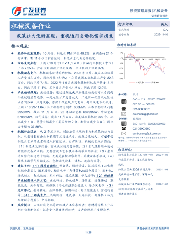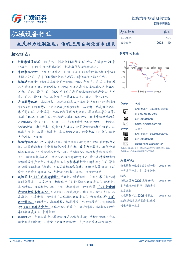 【广发证券】【20221110】20221110-广发证券-机械设备行业投资策略周报:政策拉力逐渐显现,重视通用自动化需求拐点-26页