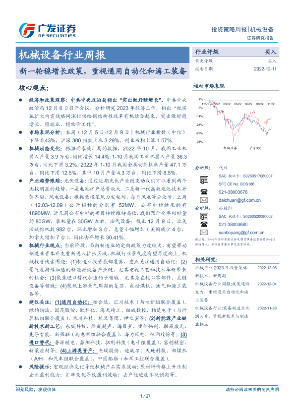 【广发证券】【20221211】20221211-广发证券-机械设备行业周报:新一轮稳增长政策,重视通用自动化和海工装备-27页