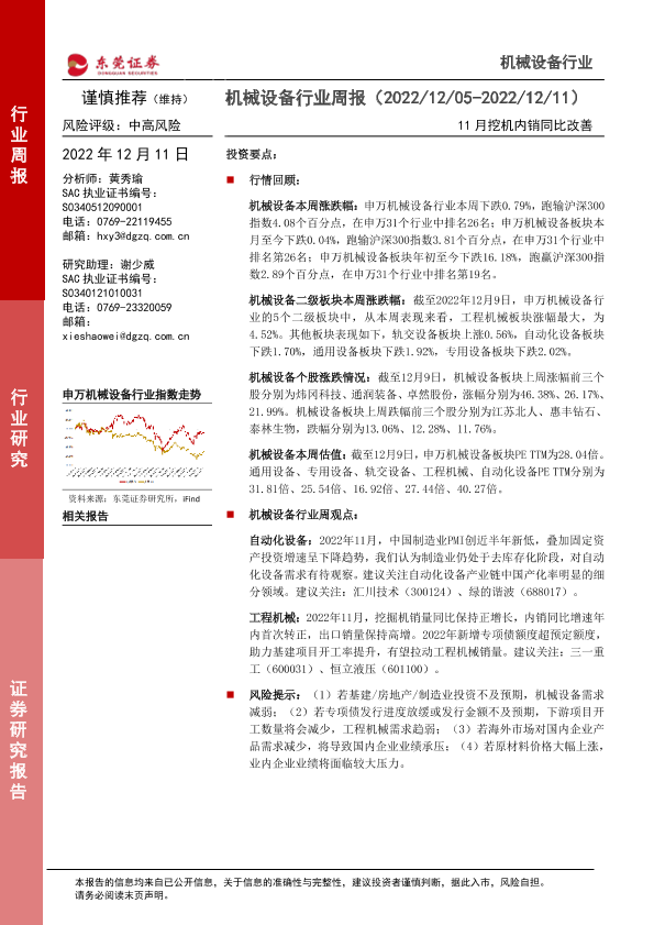 【东莞证券】【20221211】20221211-东莞证券-机械设备行业周报:11月挖机内销同比改善-11页