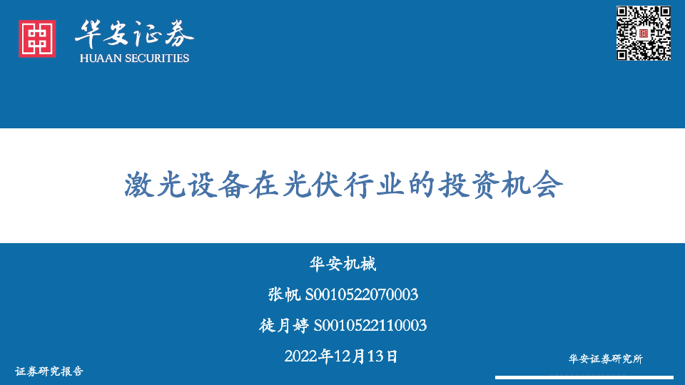 【华安证券】【20221213】激光设备在光伏行业的投资机会-39页