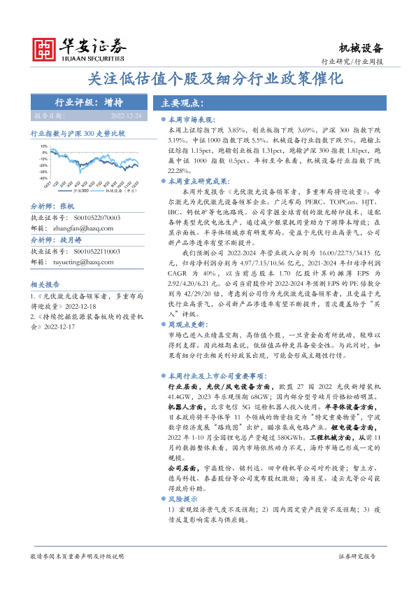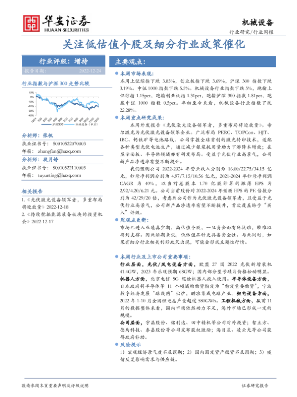 【华安证券】【20221224】20221224-华安证券-机械设备行业周报:关注低估值个股及细分行业政策催化-12页