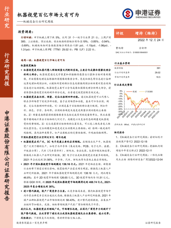 【申港证券】【20221224】20221224-申港证券-机械设备行业研究周报:机器视觉百亿市场大有可为-11页