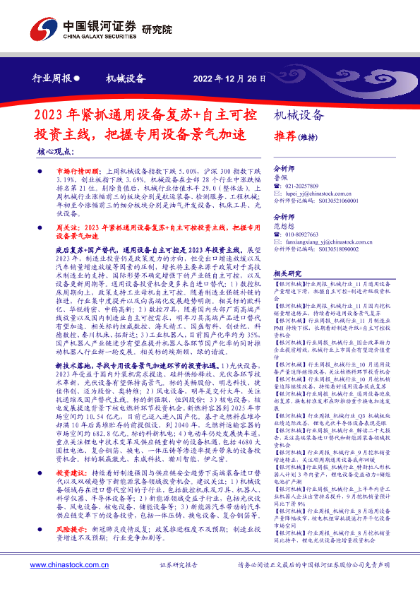 【银河证券】【20221226】2023年紧抓通用设备复苏+自主可控投资主线,把握专用设备景气加速-21页