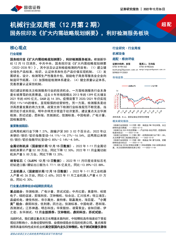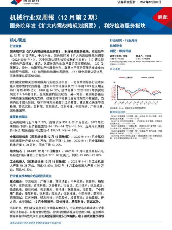 【国信证券】【20221226】机械行业双周报(12月第2期):国务院印发《扩大内需战略规划纲要》,利好检测服务板块-24页