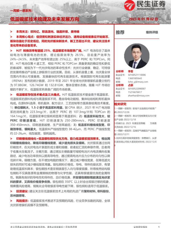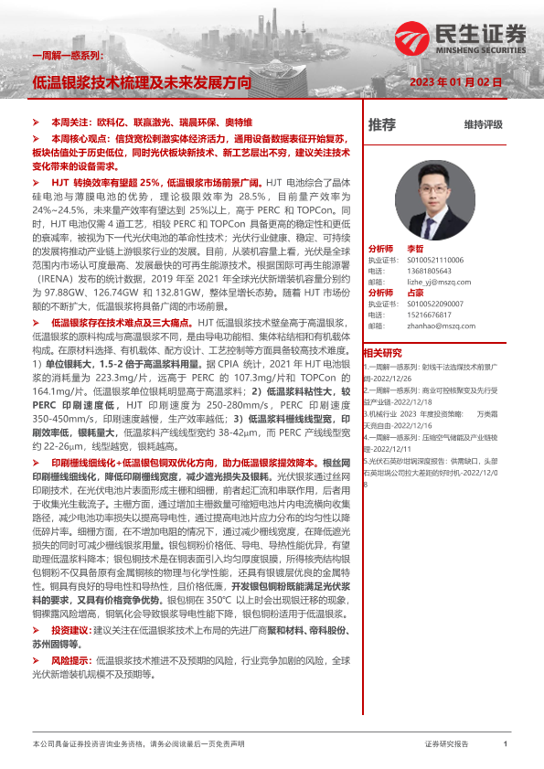 【民生证券】【20230102】机械行业一周解一惑系列:低温银浆技术梳理及未来发展方向-17页
