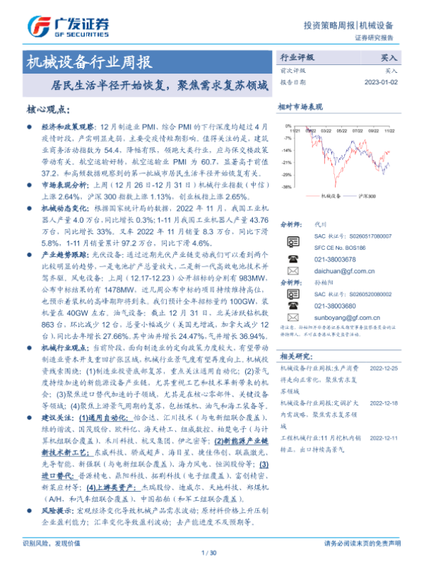 【广发证券】【20230102】20230102-广发证券-机械设备行业周报:居民生活半径开始恢复,聚焦需求复苏领域-30页