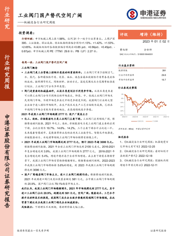 【申港证券】【20230102】20230102-申港证券-机械设备行业研究周报:工业阀门国产替代空间广阔-11页