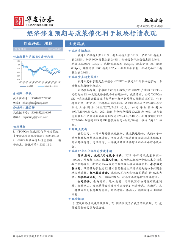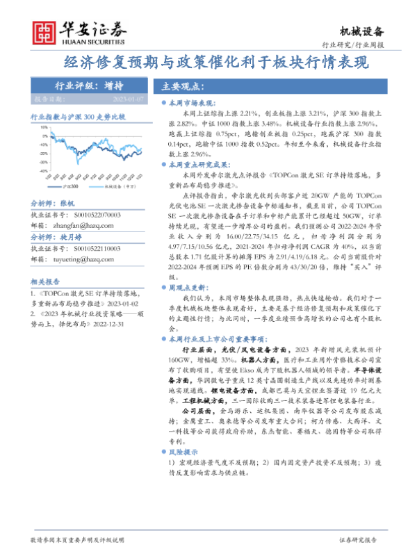 【华安证券】【20230107】20230107-华安证券-机械设备行业周报:经济修复预期与政策催化利于板块行情表现-12页