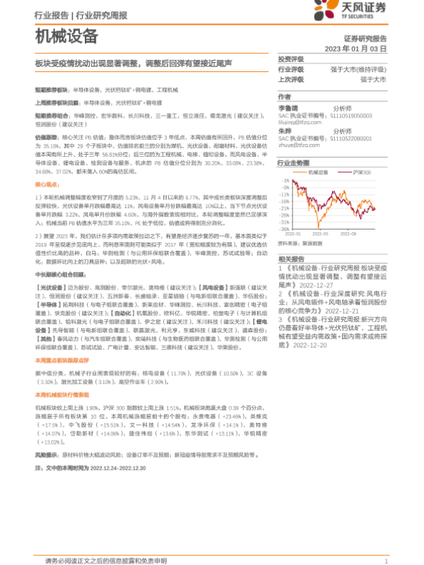 【天风证券】【20230103】20230103-天风证券-机械设备行业研究周报:板块受疫情扰动出现显著调整,调整后回弹有望接近尾声-13页