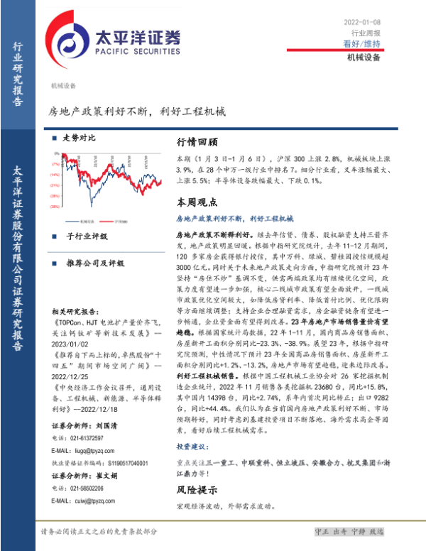 【太平洋证券】【20230108】20230108-太平洋-机械设备行业周报:房地产政策利好不断,利好工程机械-12页