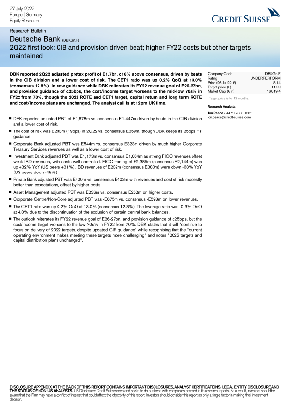 【Credit Suisse】【20220727】CS-Deutsche Bank (DBKGn.F)-6页