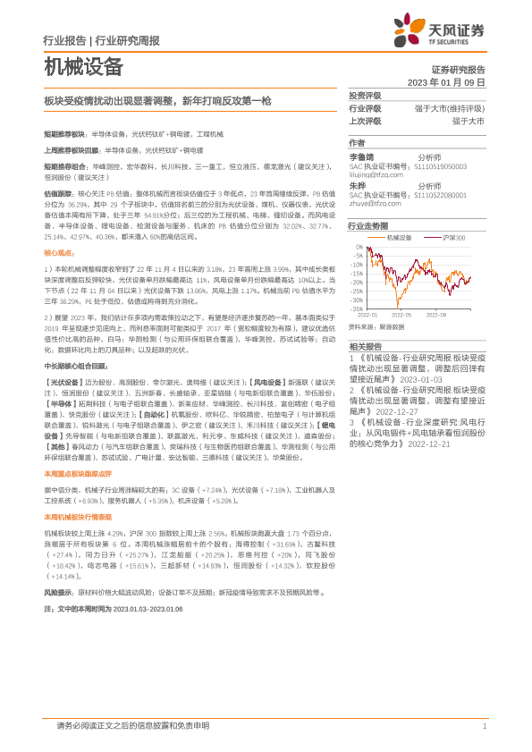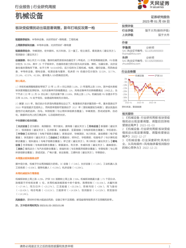 【天风证券】【20230109】20230109-天风证券-机械设备行业研究周报:板块受疫情扰动出现显著调整,新年打响反攻第一枪-13页