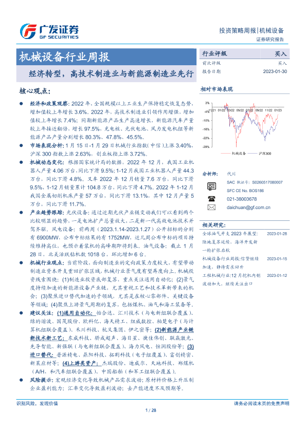 【广发证券】【20230130】20230130-广发证券-机械设备行业周报:经济转型,高技术制造业与新能源制造业先行-28页