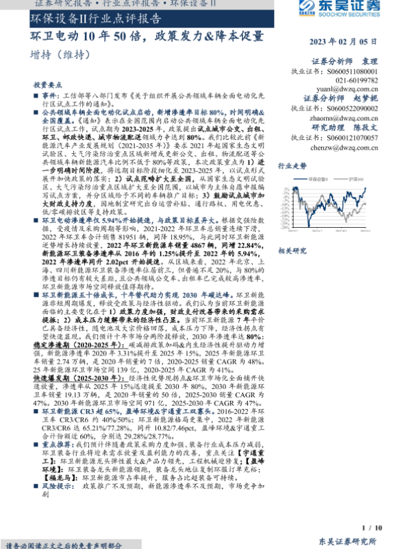 【东吴证券】【20230205】环保设备Ⅱ行业点评报告:环卫电动10年50倍,政策发力&降本促量-10页