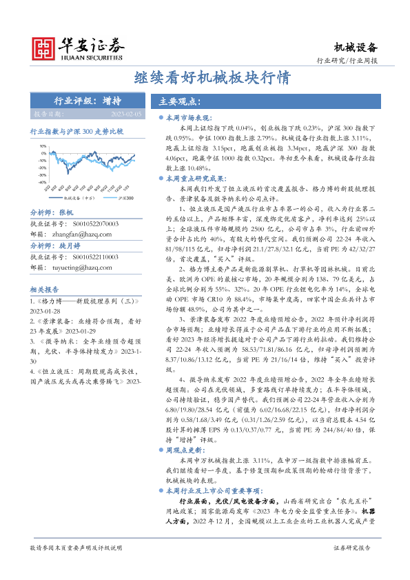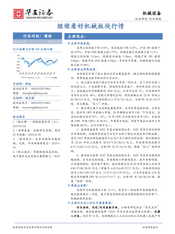 【华安证券】【20230205】20230205-华安证券-机械设备行业周报:继续看好机械板块行情-13页