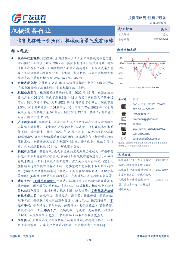 【广发证券】【20230214】20230214-广发证券-机械设备行业投资策略周报:信贷支撑进一步强化,机械设备景气度有保障-29页