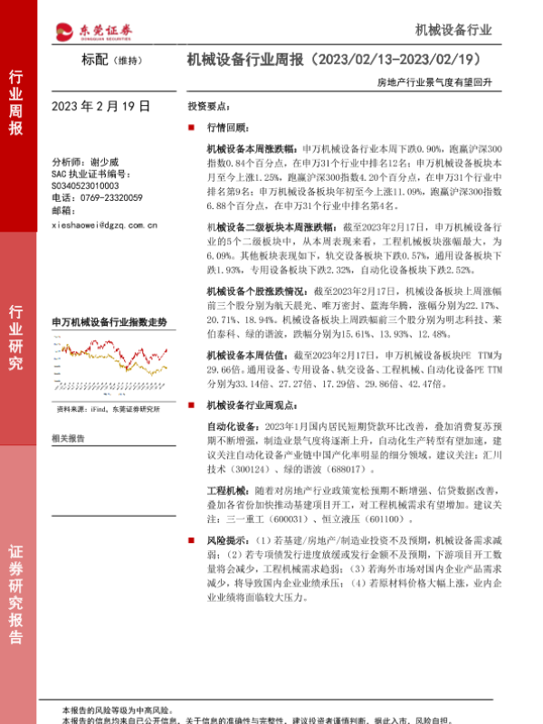 【东莞证券】【20230219】机械设备行业周报:房地产行业景气度有望回升-11页