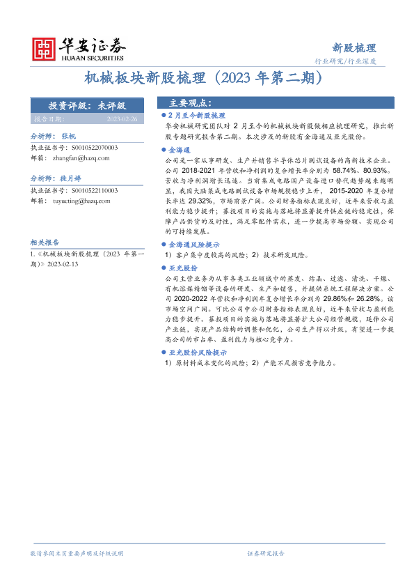 【华安证券】【20230226】机械板块新股梳理(2023年第二期)-12页