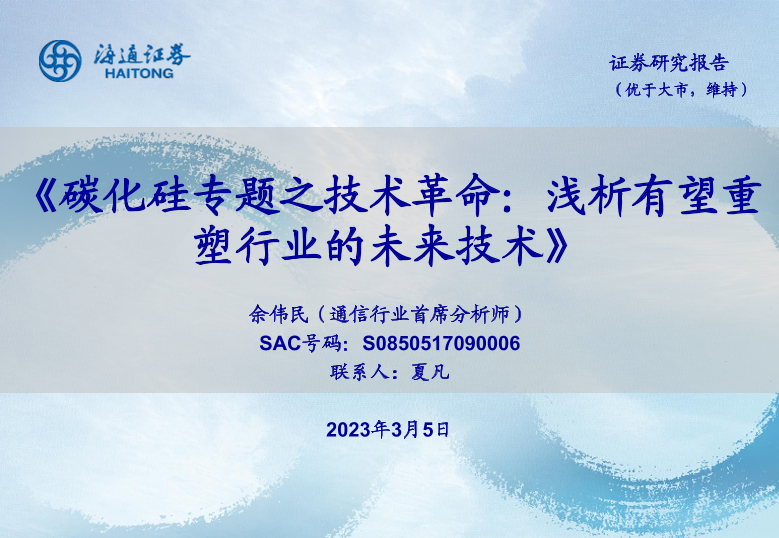 【海通证券】【20230305】碳化硅专题之技术革命:浅析有望重塑行业的未来技术-14页