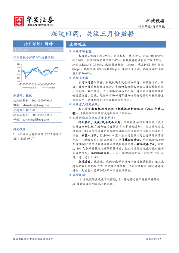 【华安证券】【20230312】20230312-华安证券-机械设备行业周报:板块回调,关注三月份数据-13页