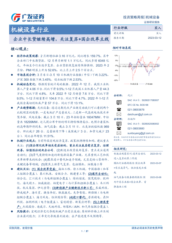 【广发证券】【20230312】20230312-广发证券-机械设备行业投资策略周报:企业中长贷继续高增,关注复苏+国企改革主线-27页