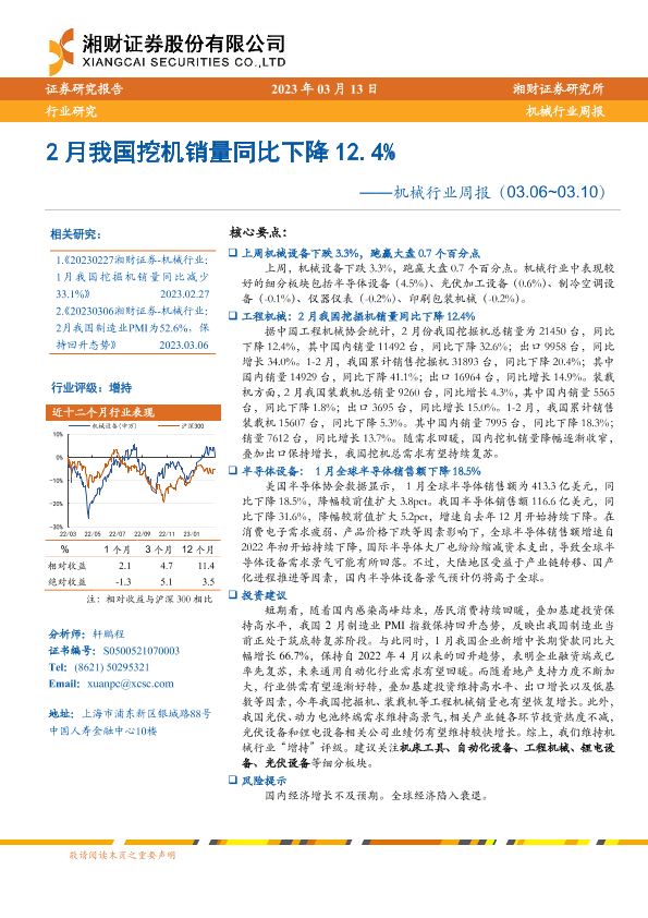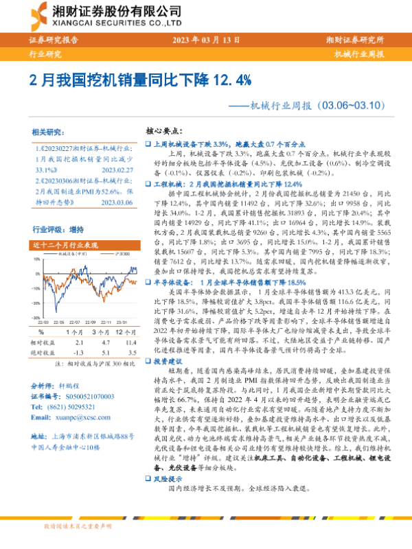 【湘财证券】【20230313】20230313-湘财证券-机械行业周报:2月我国挖机销量同比下降12.4%-13页